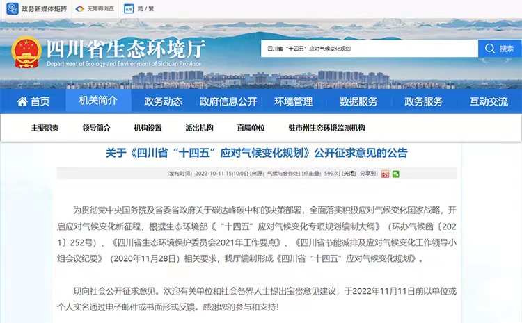 為貫徹落實黨中央國務院以及省委政府關于碳達峰碳中和的重大戰略決策,落實積極應對氣候變化國家戰略和國家自主貢獻目標,增強全域氣候韌性,降低氣候變化風險,四川省生態環境廳特別編制《四川省“十四五”應對氣候變化規劃》,以下內容簡稱《規劃》,該規劃是指導“十四五”乃至更長時期四川省應對氣候變化的行動指南。