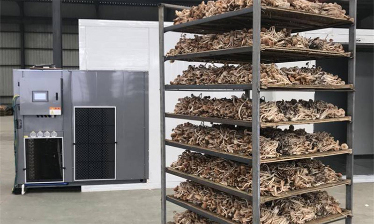 想要干燥品質與數量二者兼得,就得選擇一種更加高效的烘干方式,空氣源熱泵烘干機就是一種不錯的選擇??諝庠礋岜煤娓蓹C節能環保,將空氣作為熱量來源,從空氣中吸收低位熱能,再耗費少量電能將低位熱能轉化為高位熱能,從而進行物料烘干。因為茶樹菇含水量較高,不能高溫急速烘干,所以茶樹菇烘干一般要分成好幾個階段完成: