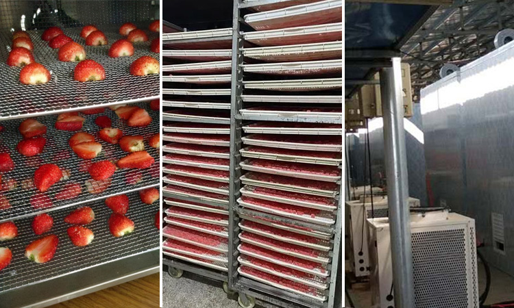 7. 將烘干房降溫至30-35攝氏度,烘干12小時左右,等到草莓含水量在8%左右即可停止烘干;